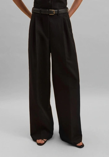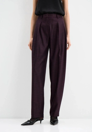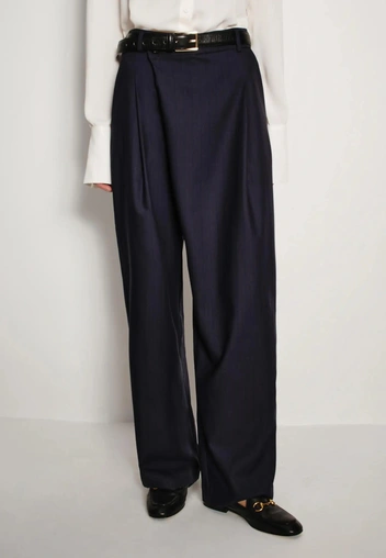 Широкие брюки — настоящее спасение для тех, кто ценит комфорт и свободу движений. Их легко стилизовать как с облегающим верхом, так и со свободной рубашкой или пиджаком. Глубокие тона (синий, коричневый, фиолетовый) позволяют создавать эффектный, но при этом спокойный образ, а свободный крой только усилит непринужденность вашего аутфита.