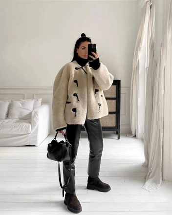 При стилизации у вас есть два варианта: играть с текстурами или не играть. Если выбираете первый, то носите кожаные брюки с более мягкими тканями. Они отлично подружатся с мехом и вельветом — сбалансируют их и сделают образ интереснее.