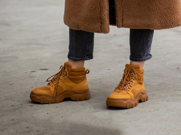 Один из самых громких трендов текущего сезона (да и в целом последних двух десятков лет) – грубые ботинки с прочной подошвой и шнуровкой (читайте также: Полный гид по самой модной обуви для осени и зимы 2019). Чересчур массивная платформа может вызывать дискомфорт во время активностей на природе, поэтому если вам предстоят поездки за город, лучше выбирайте прочную, но не слишком толстую рифленую подошву, чтобы ненароком не получить травму.