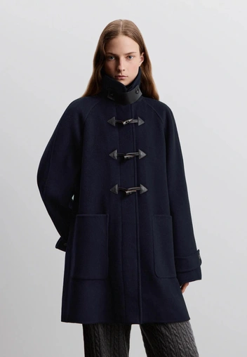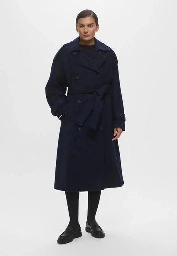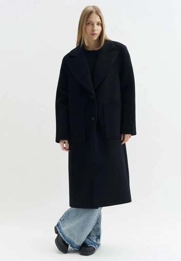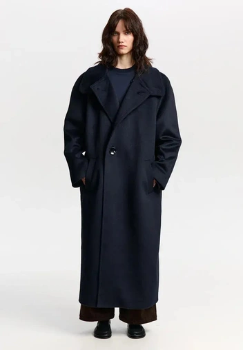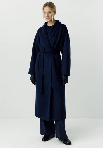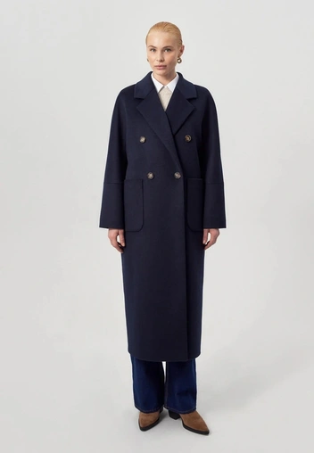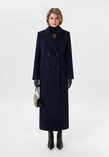 В темно‑синем пальто органично живут и приталенный силуэт, и мягкая А‑линия: строгий крой не теряет серьезности, но визуально кажется более «живым». Если выбирать одно строгое пальто на каждый день, выдерживающее любой дресс‑код, пусть это будет темно‑синее миди с идеальной посадкой в плечах и аккуратно обозначенной талией — без перегибов в сторону милитари или излишнего романтизма.