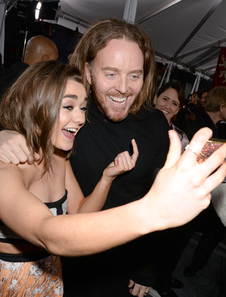 Зато не премьере красовалась младшая экранная сестричка Сансы – Арья Старк, она же 18-летняя Мэйси Уильямс. Старлетка появилась на мероприятии в легкомысленной паре из укороченного лифа и подходящей к нему юбки-клеш, с удовольствием позировала и регулярно делала селфи.