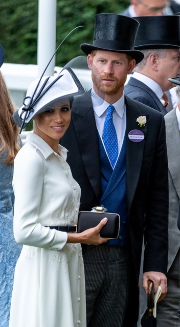 На королевских скачках Royal Ascot — довольно строгий дресс-код, поэтому правильно подготовиться к выходу (особенно неподготовленному человеку) будет не так просто. Благо, новоиспеченной герцогине в этом помогали стилисты. Сассекские показали классические наряды, которые на удивление выглядели крайне свежо и актуально. Меган сделала ставку на платье-рубашку в длине миди и аккуратную шляпку, скоординировав образ с нарядом супруга при помощи черных акцентов.