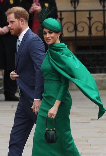На первый взгляд, образы Меган и Гарри для ежегодной службы в Вестминстерском аббатстве кажутся довольно разнородными. Но все внимание стоит обратить на мельчайшие детали (за это мы и любили стиль принца). Меган примерила стильное и необычное платье изумрудного оттенка от Emilia Wickstead, а Гарри выбрал костюм с жакетом, подклад которого дублировал ярко-зеленый цвет наряда Меган.