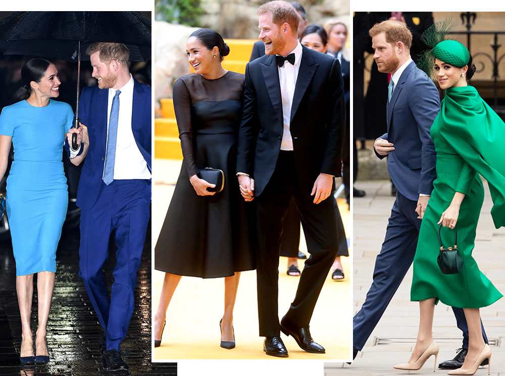 Яркие цвета пара выбирает не так часто, зато обожает экспериментировать с разными оттенками одного и того же цвета. Гарри чаще предпочитает насыщенный синий, удачно сочетая в одном образе глубокий индиго и небесно-голубой. Меган экспериментирует с различными оттенками, но особенно удачный тотал-лук получился у нее в январе 2020 года: Сассекская взяла за основу коричневый цвет, сочетая карамельную водолазку с шоколадной атласной юбкой и бархатными лодочками.