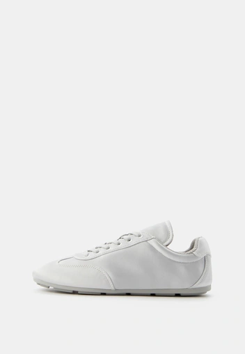 Замша-замша-замша — судя по Неделям моды на 2025 год, она будет главным материалом. Из нее делают не только привычные сумки, но и одежду с кроссовками. Сейчас нас интересуют последние: кроссовки из замши отражают тренд на бохо, а еще сочетаются почти с любыми образами, так как материал выглядит благородно. Miu Miu предлагают носить их с цветными шнурками — так мы сочетаем сразу два тренда (читайте также: Платье в стиле Chloe, замшевые казаки и еще 4 вещи в стиле бохо-шик, которые нужны вам в 2025 году).