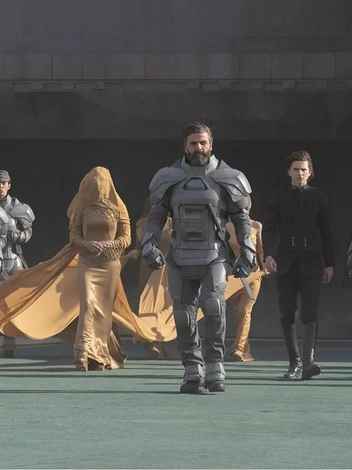 «Дюна» — не традиционный фильм о будущем: в нем вы не увидите метализированных костюмов, высоких ботфортов на платформе, пиджаков с острыми плечами, футуристичных очков. Режиссер Дени Вильнев отошел от классического представления мира будущего с его космическими кораблями и инопланетными костюмами и представил кинокартину в эстетике modieval (объединение двух английский слов: modern — «современный» и medieval — «средневековый»).