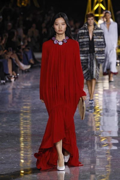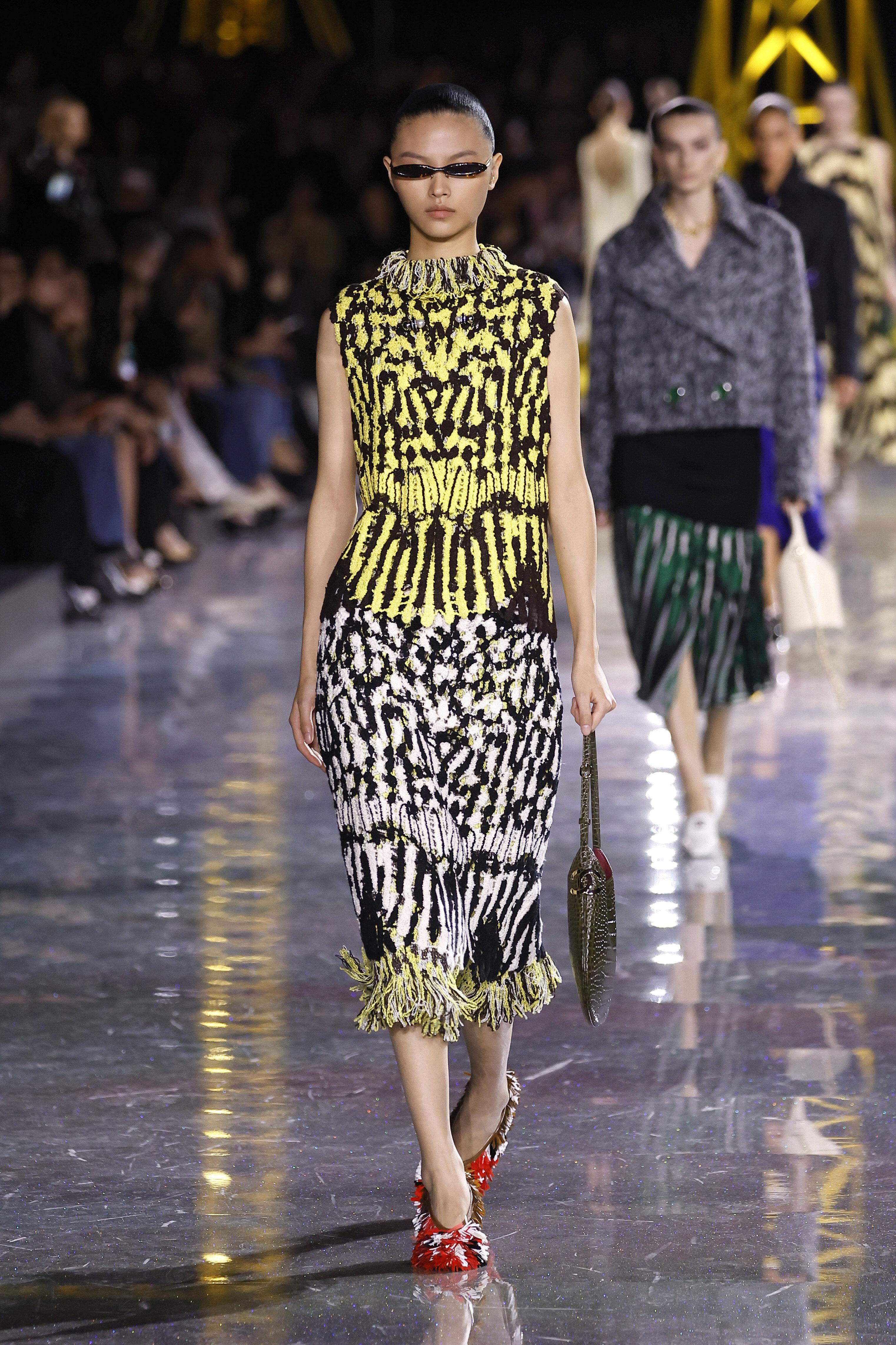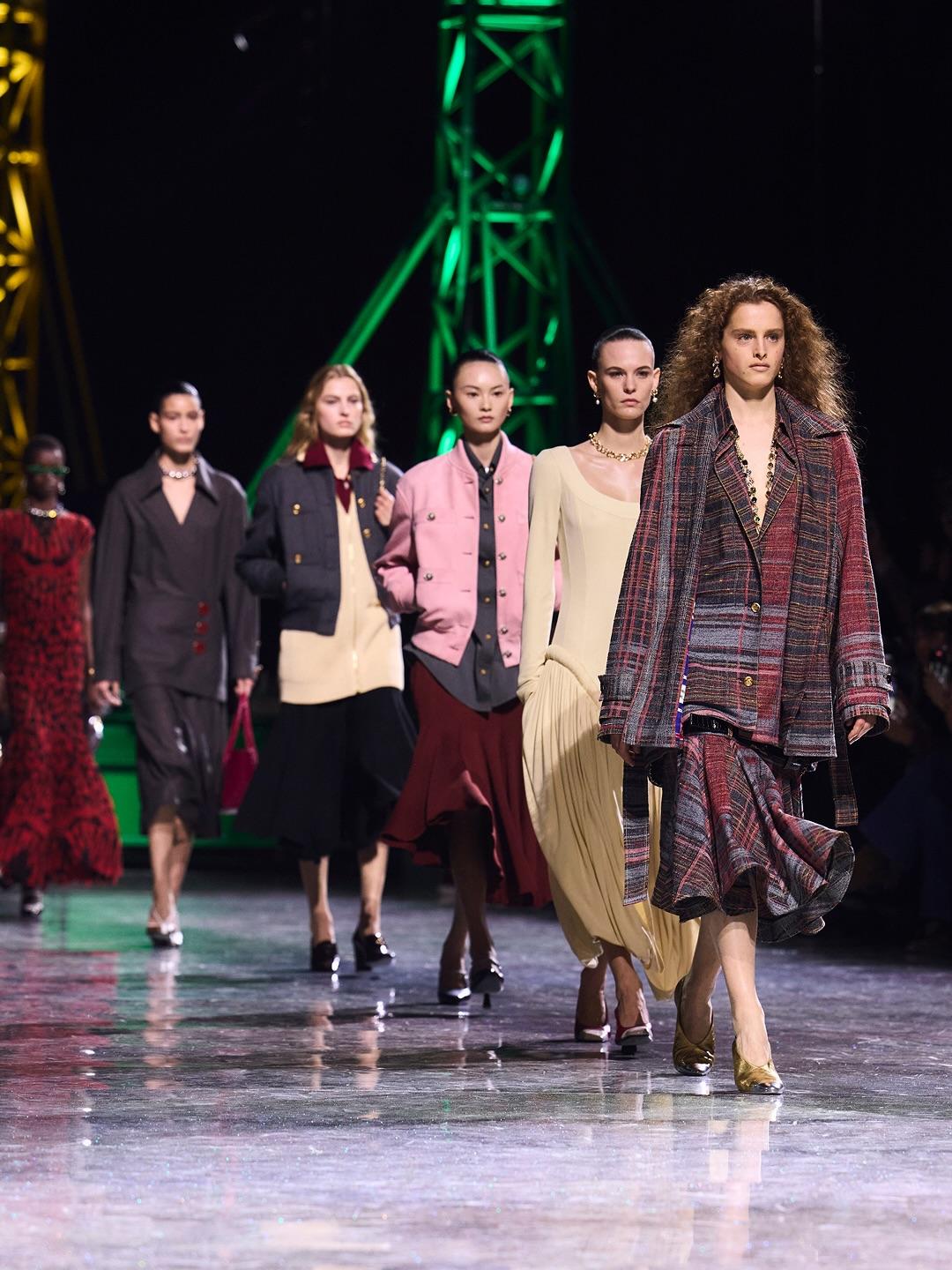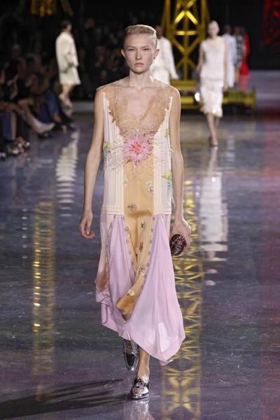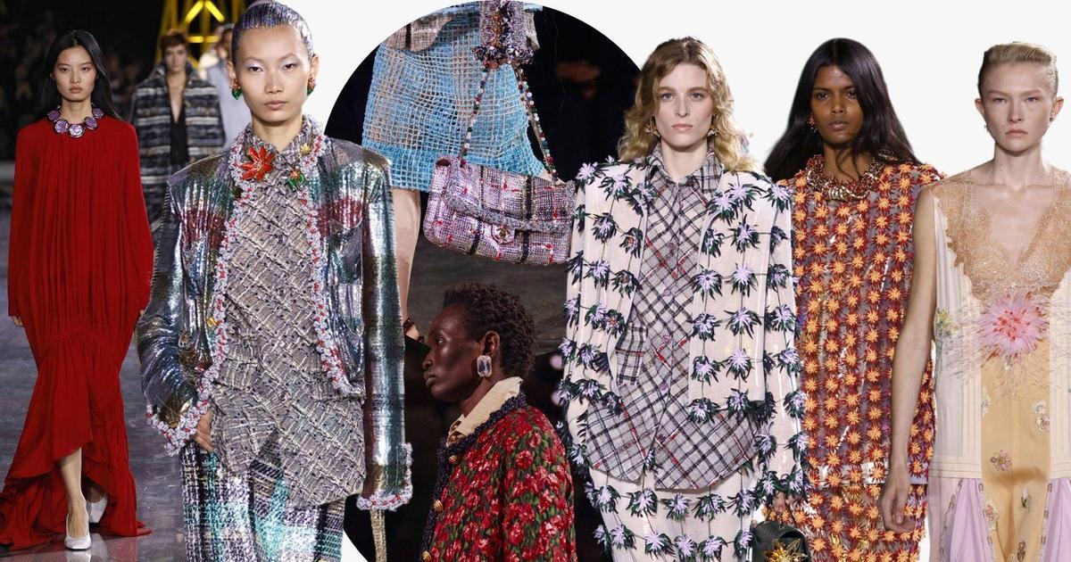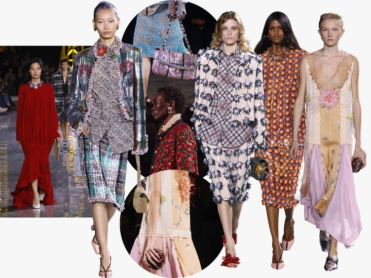 Подмечаем цветочные броши и принты, которые дизайнер продвигает вот уже несколько сезонов подряд. Вспоминая о флористической обсессии Джонатана Андерсона, убеждаемся, что будем носить их весь ближайший год. Следом обращаем внимание на парадно-выходные туфли: отказываемся от минимализма и готовимся превратиться в Кэрри Брэдшоу, выискивая самые эффектные пары. Сюда же записываем все самые яркие украшения — даем бой quiet luxury, переходя в loud-режим с длинными жемчужными ожерельями и крупными бусами из эмали.