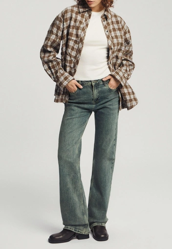Вторая причина — то, как именно выглядят буткаты. Если у брюк фасона клеш мы видим более резкое расширение книзу, то буткаты обладают плавным переходом от облегающей к более широкой джинсе. Из-за этого их еще называют интеллигентным клешем, ведь они легко сочетаются с деловыми образами благодаря неброскому «тихому» фасону.