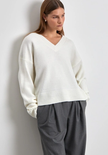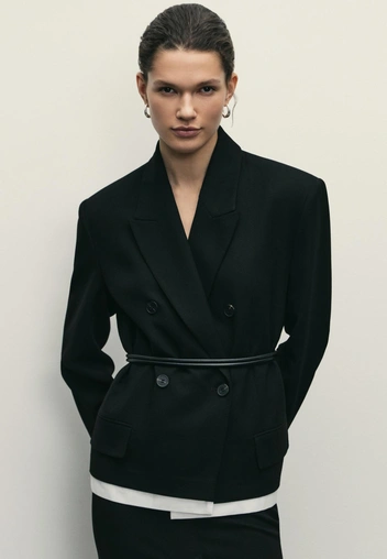 Мы уже говорили о том, что, благодаря более плавным линиям, мы можем надеть буткаты в офис и не привлекать лишнего внимания. Поэтому рекомендуем носить джинсы высокой посадки с классической рубашкой и пиджаком. Последний может быть с акцентом на плечах — они сделают линии талии и бедер более узкими.