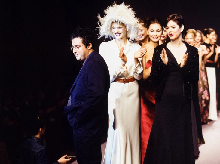 Эльбаз в наглухо, даже на пуговицу под воротником, которой никто не пользуется, застегнутом черном тренче сидит в углу ресторана Barlotti в ЦУМе — а вокруг ни тени еды. Вообще никаких признаков того, что в мирное время здесь что-то готовят. Все убрали. Я уже много лет влюблена в этого человека — он добрый, танцует, шьет платья, которые мне идут (у меня рост 160 см и большая грудь, что требует портновского мастерства старой школы), у него все в порядке с чувством юмора, что для fashion-человека большая редкость. Но, кажется, он сейчас заплачет. В платье нет смысла, если его некуда надеть — оно существует для того, чтобы в нем have fun. Я спрашиваю у Эльбаза, что такое этот fun, а он, как будто не расслышав, начинает рассказывать мне историю — издалека.