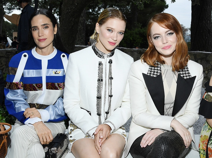 Строки из мемуаров Грейс Коддингтон также стали частью саундтрека показа: их зачитала Дженнифер Коннелли — давняя муза Жескьера и Дома Louis Vuitton. Кроме нее в первом ряду показа были замечены Эмма Стоун, Леа Сейду, Софи Тернер, Джастин Теру и другие звездные гости.