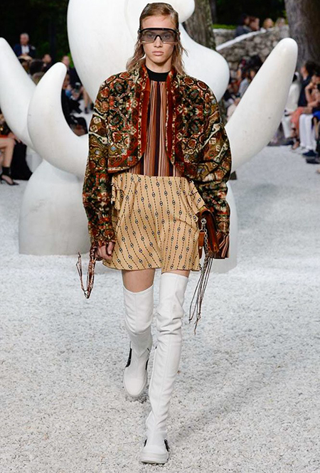Вслед за показами в Монако, калифорнийской Палм-Спрингс, Бразилии и Японии, Louis Vuitton под руководством Николя Жескьера отправляется в небольшой город Сен-Поль-Де-Ванс во Франции, чтобы представить круизную коллекцию. Местом модного шоу стал художественный фонд современного искусства — детище Эме Мага и его жены Маргариты, известных французских коллекционеров XX столетия. Жескьер, показывающий сезонные коллекции не иначе, чем в парижском Лувре, с выбором места не прогадал: с одной стороны — шедевр современной архитектуры, созданный Жозефом Луи Сертом, с другой — Средиземное море, явно намекающее на круиз.