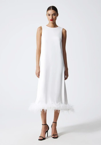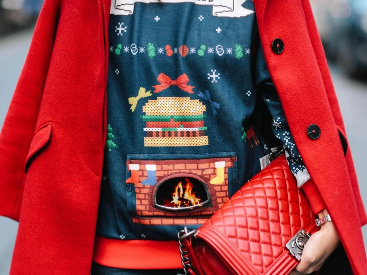 Летние платья из струящейся ткани с цветочными принтами выглядят неуместно во время празднования Нового года: рано или поздно вам захочется надеть под него теплые плотные колготки, меховые тапочки и кашемировый свитер. Каким бы не был повод, выбирайте наряд по погоде: примерьте, например, закрытое платье, украшенное перьями — оно смотрится игриво и стильно (читайте также: 5 простых советов, как превратить строгий офисный костюм в наряд для корпоратива).