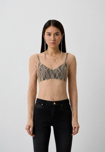 Базовый образ, как джинсы с футболкой, не подходит для праздничного застолья. Этот ничем не примечательный аутфит не производит должного впечатления, так как является шаблонным и скучным для такого волшебного праздника. Заменить его стоит на более элегантный и женственный наряд: например, брюки с полупрозрачным боди. Всего одна вещь — и образ уже не кажется заурядным.
