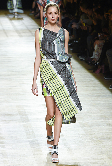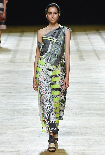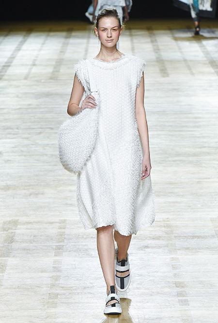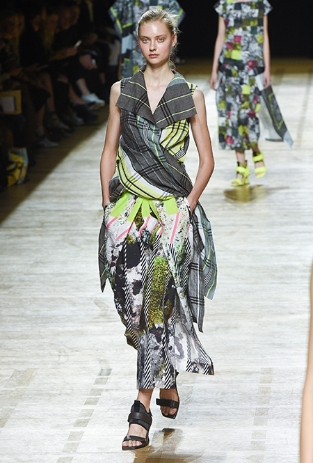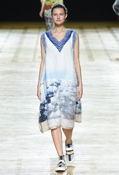 Собственно, природные мотивы и можно увидеть в коллекции молодого японца. Чистые акватические оттенки, напоминающие о холодных водах Северного моря, соседствуют с немного болезненным оттенком первой зелени, пробивающейся сквозь вечные снега. Черный цвет в этом случае оказывается цветом холодной земли, а соседствует он с ярким розовым оттенком, напоминающим о мерцании северного сияния.
