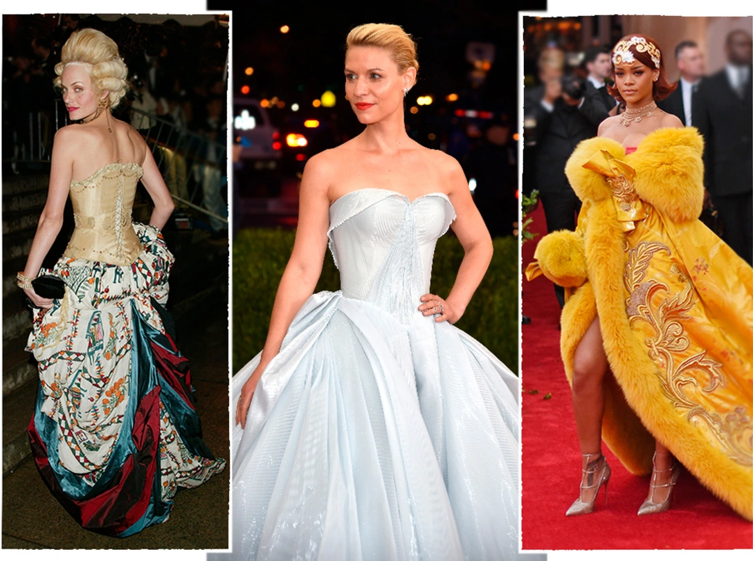 Торжество 1996 года было посвящено коллекциям Кристиана Диора и собрало вокруг себя преданных поклонниц его таланта. Тогдашний дизайнер бренда Джон Гальяно пришел в Метрополитен-музей под ручку с Дианой Спенсер, разведенной с английским принцем, но не утратившую любовь и признание публики. Для нее Гальяно сшил довольно скромный наряд в бельевом стиле, который, разумеется, выделялся на фоне остальных. В дополнение к нему Диана подобрала легендарное колье из семи нитей жемчуга и сапфира, а также именную сумочку «Леди Диор», которую в разных вариациях носили и другие гости Met Gala.