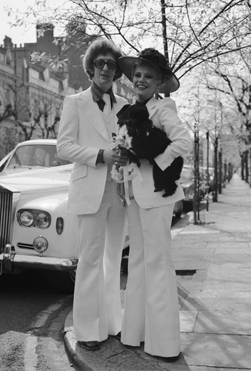 Несмотря на довольно прочные позиции брюк и жакетов в моде второй половины XX века, канонические смокинги от Yves Saint Laurent, которые дизайнер предложил в 1966 году, спровоцировали нешуточный скандал — классическая фрачная пара все еще считалась неотъемлемой собственностью мужчин. Кроме того, Сен-Лоран придумал шокирующее дополнение к костюму — прозрачную шелковую блузу. Эта пара по тем временам выходила за рамки и казалась патриархальной модной общественности провокацией. Однако черные смокинги быстро полюбились француженкам Катрин Денев и Лайзе Минелли, которые часто выбирали смокинги для своих вечерних выходов, и консерваторы сдались окончательно. К тому же, культовый фотограф Хельмут Ньютон вскоре увековечил их в фотосессии для журнала Vogue.