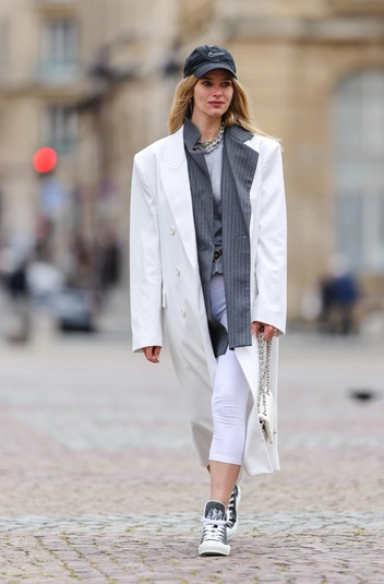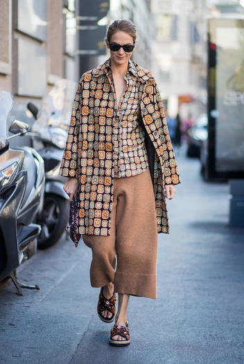 Когда-то капри действительно были в моде, и их носили самые стильные девушки, однако в 2023 году с ними нужно расстаться раз и навсегда (даже в домашнем гардеробе). Эту модель стоит опасаться, ведь неправильная длина брюк до середины голени создает эффект коротких ног, к тому же приталенный силуэт делает вашу фигуру еще и непропорциональной. Если вам хочется что-то облегающее, присмотритесь к узким брюкам, которые вновь надевают главные модницы. Стилизуйте их с высокими сапогами и длинным шерстяным пальто.