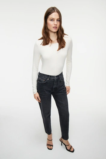 Данный тип кроя противопоказан женщинам 40+, так как эта модель не подчеркивает статус ее обладательницы, а наоборот, делает образ нелепым и несуразным. Заниженная талия сейчас является самой модной тенденцией, пришедшей к нам из нулевых, и вдохновение девушки ищут в образах Дженнифер Энистон, Кристины Агилеры и Пэрис Хилтон. Однако не все замечают, что такой фасон искажает пропорции фигуры и визуально укорачивает длину ног. Лучше отдайте свой выбор джинсам на высокой талии, которая благодаря идеальной посадке подчеркнет бедра и грамотно оформит силуэт.