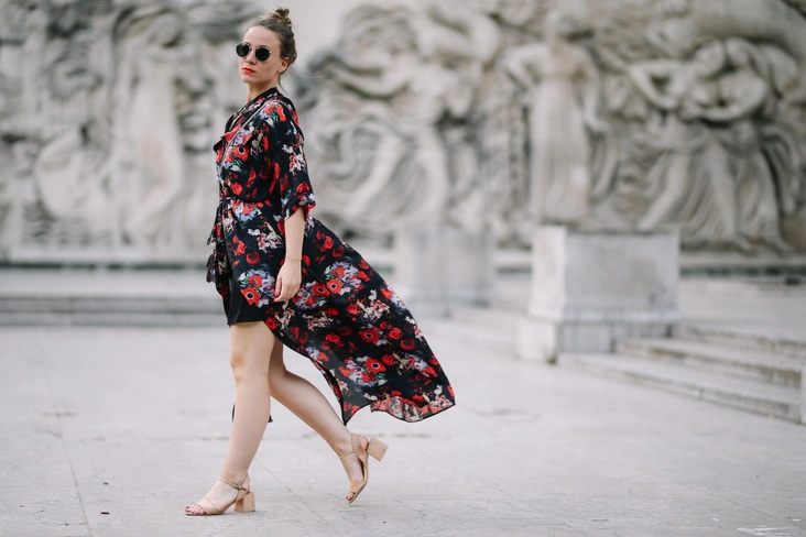 Такой узор создает женственный и романтичный образ, однако носить его следует осторожно. Цветочные наряды при неумелом использовании способны превратить образ любой женщины в безвкусный и старомодный. Избегайте крупных цветов, так как они не только выдают возраст, но и прибавляют лишний объем (читайте также: Эффект anti-age: 5 лучших цветов для зимнего гардероба, которые молодят всех женщин). Отдайте предпочтение мелкому рисунку и при этом следите, чтобы между цветками было фоновое пространство, «воздух» — иначе получится нагромождение.