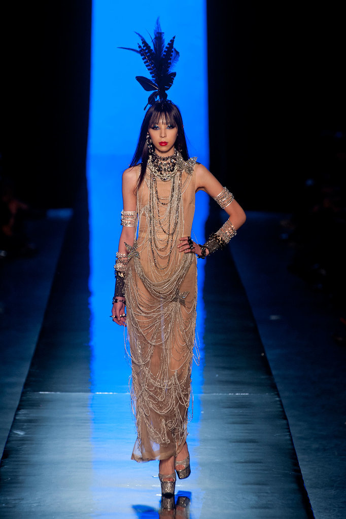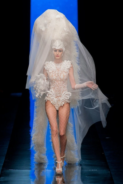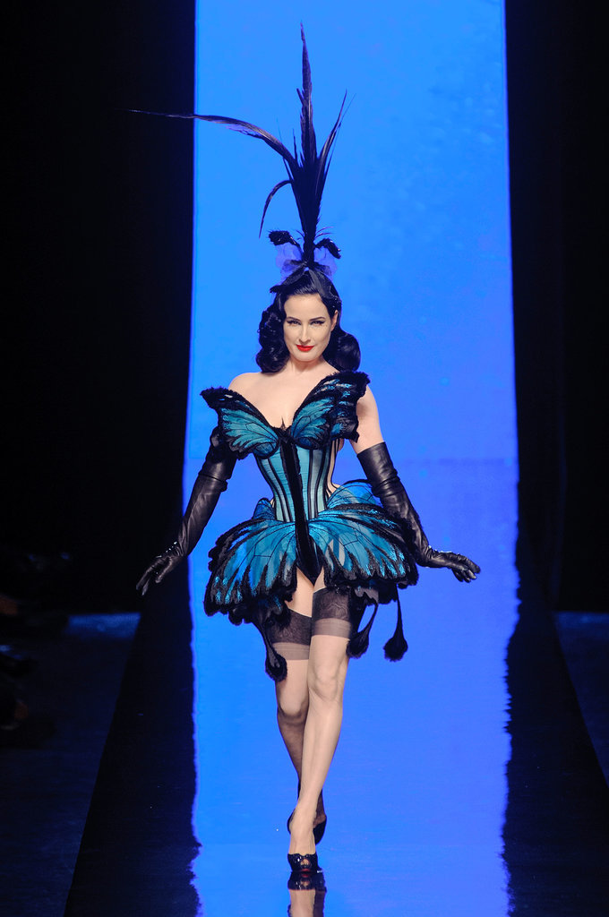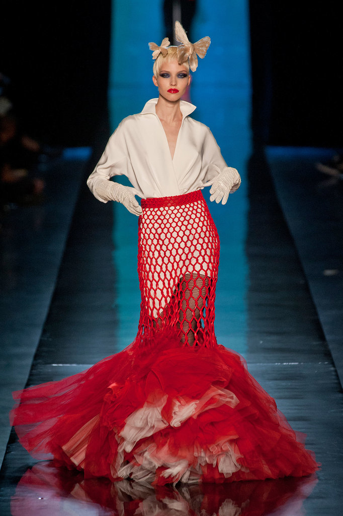Бабочки стали главным вдохновение Жана-Поля Готье. И если у Alexis Mabille они были всего лишь украшением подиума, то Готье использовал их при создании самой одежды: на показе появилась Дита фон Тиз (Dita Von Teese) в корсетном сине-голубом платье, по форме напоминающем силуэт насекомого. Модели демонстрировали жакеты, лацканы которых выполнены в форме крыльев бабочек, а сами насекомые в виде черных вуалей поселились у них на головах. Рукава блузок и накидок «летучая мышь» из воздушных и прозрачных материалов были больше похожи на легкие крылья.