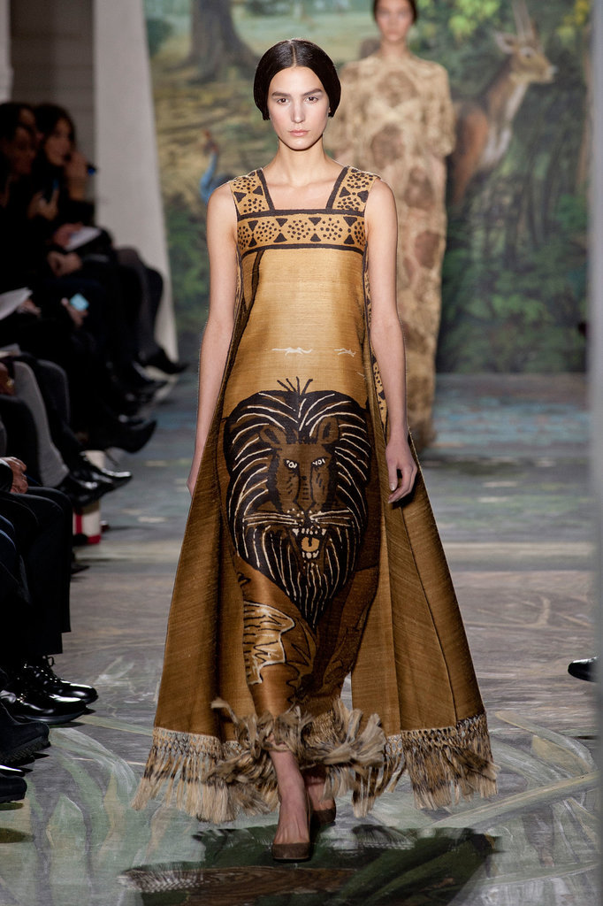 Второй темой коллекции выбрали джунгли: на нарядах появились изображения львов, гепардов и множество лиственных элементов. А анималистические принты напоминали пиксельную расцветку "хаки". Платья получились яркими и разнообразными, в отличие от шанхайской коллекции, которая состояла полностью из оттенков красного.