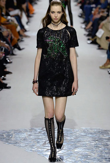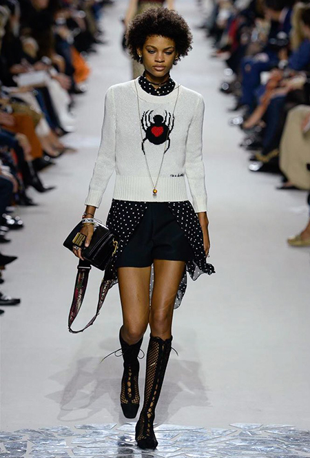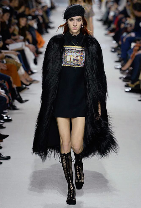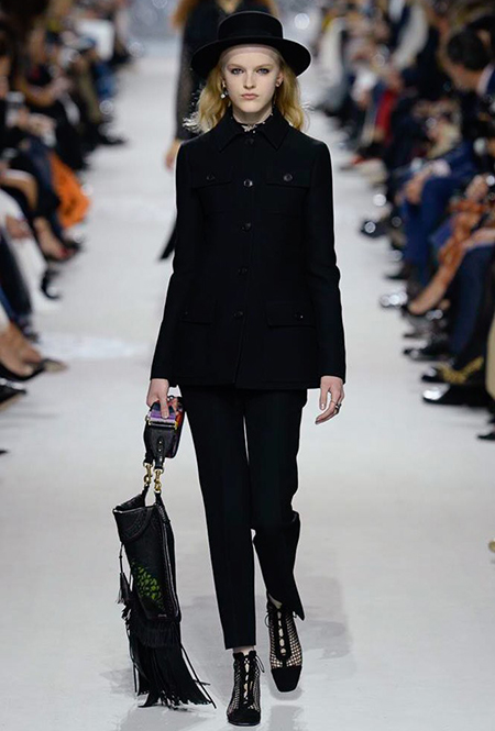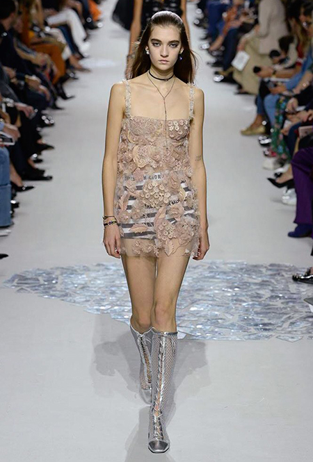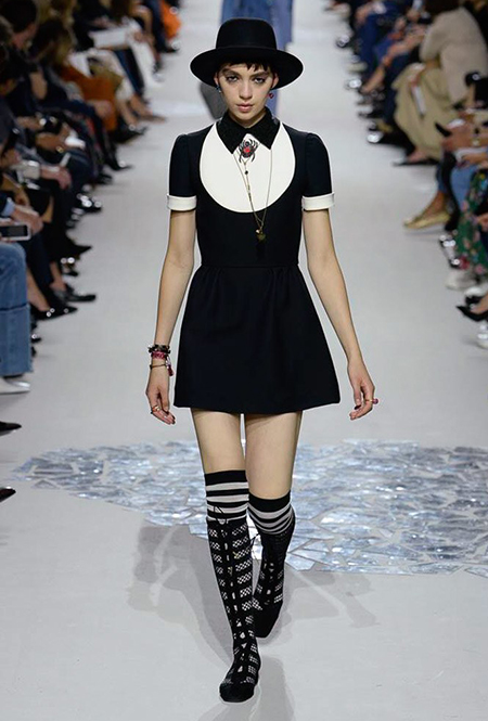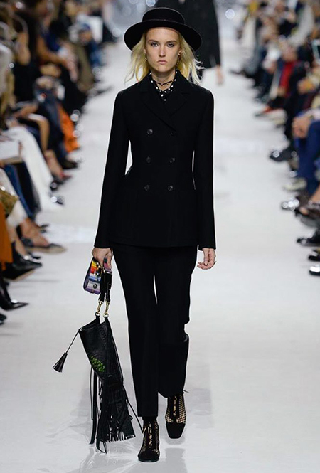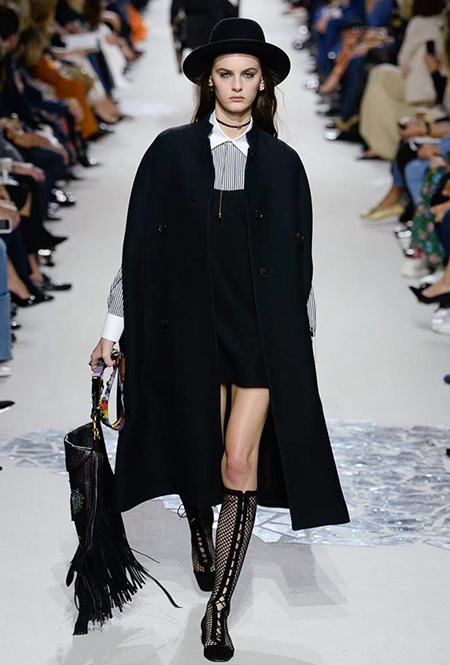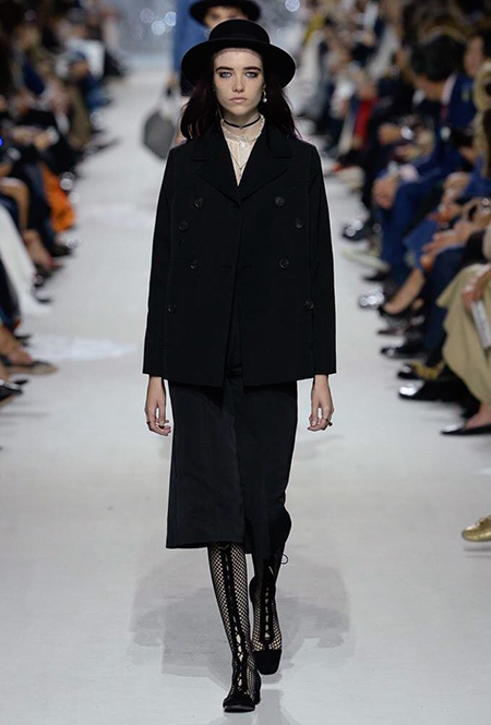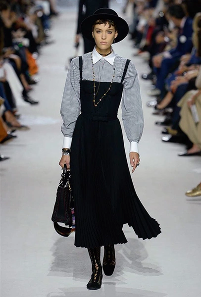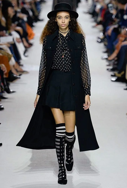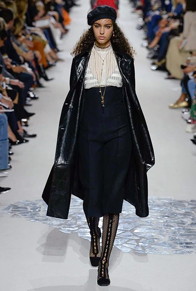 Мария Грация Кьюри прекрасно знает, чего от нее ждут модные критики, клиенты и просто поклонники бренда, успевшие полюбить новую эстетику Dior со времен ее дебютной коллекции год назад. Знает – и прилежно выдает. Но не забывает при этом каждую коллекцию делать непохожей на предыдущие, несмотря на то, что фирменный стиль Кьюри сумеет распознать даже человек, не слишком разбирающийся в моде.