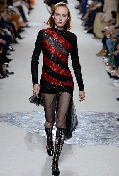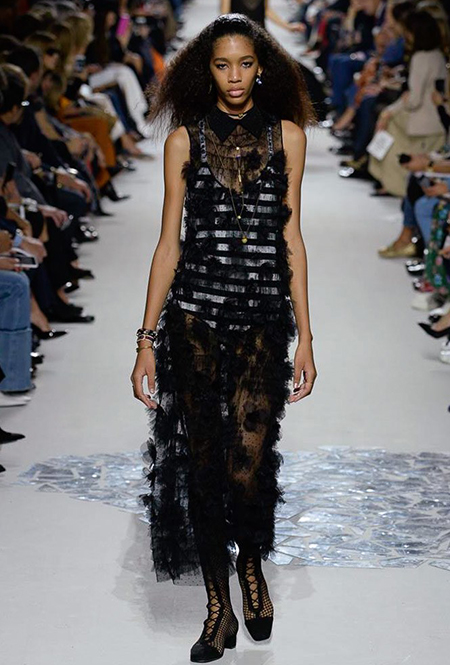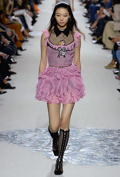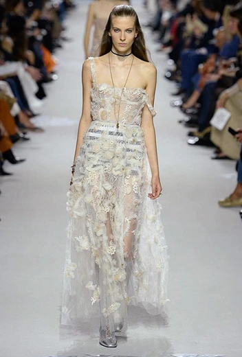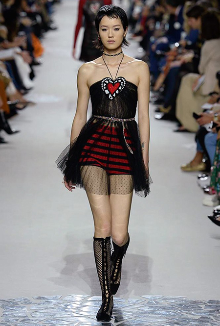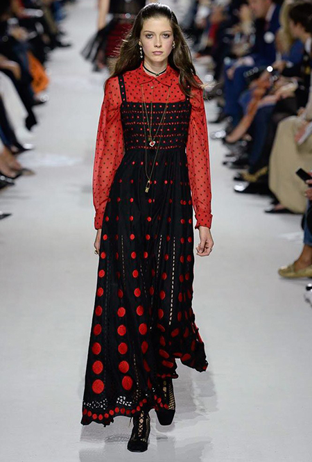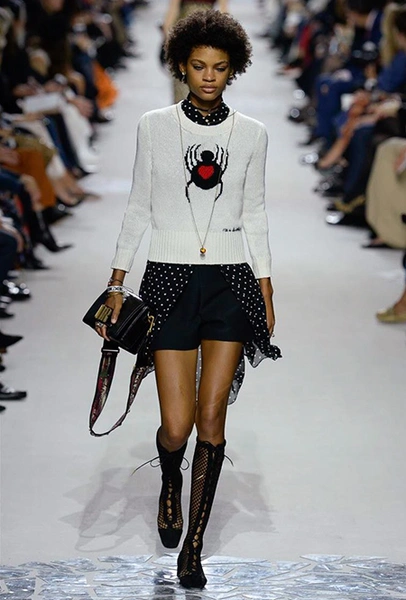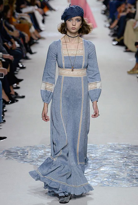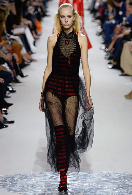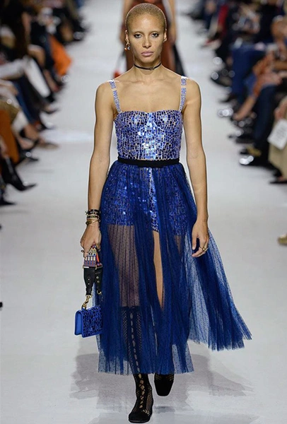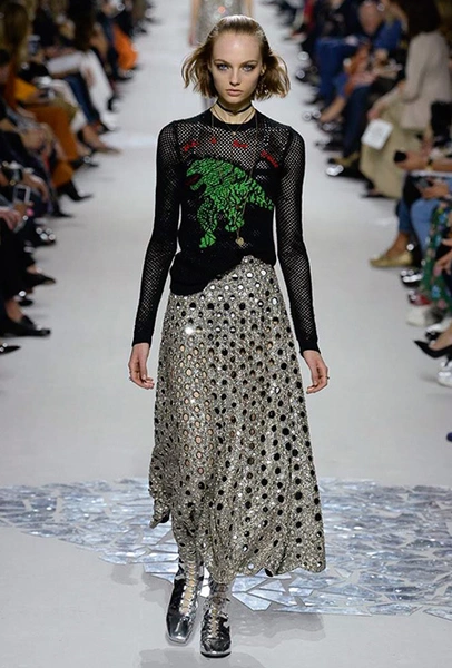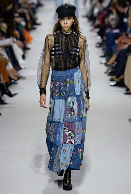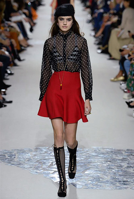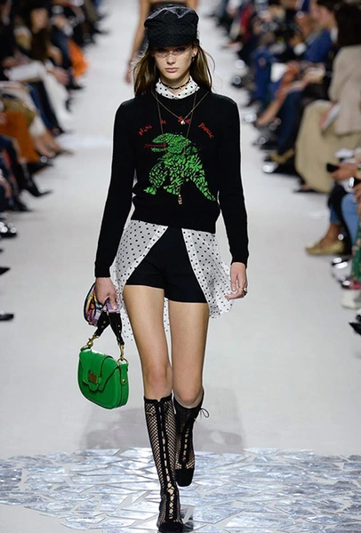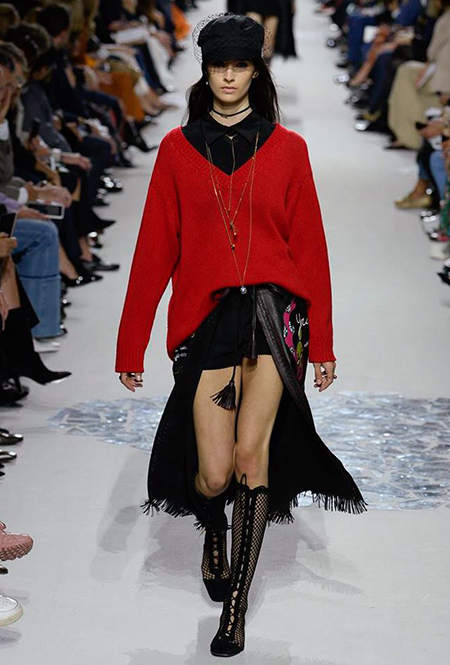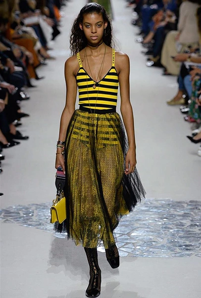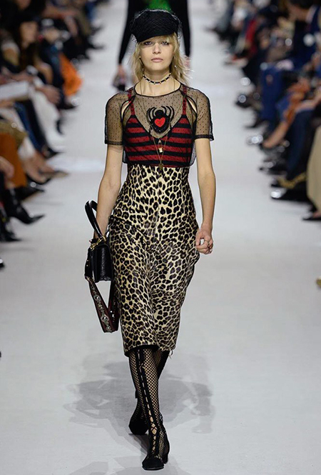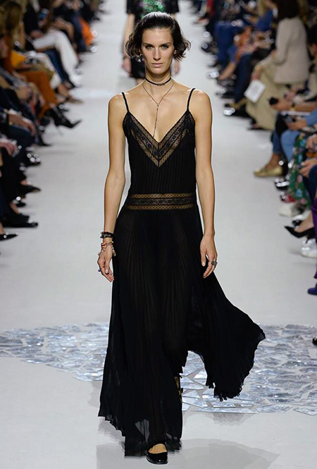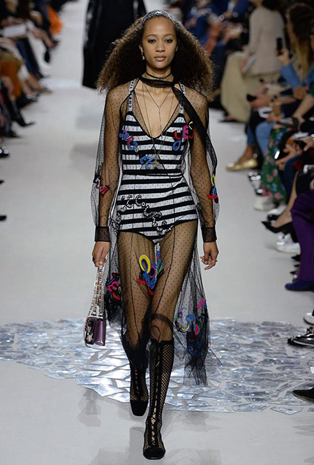 Вот и на этот раз на подиуме были платья с плотно прилегающими к телу, четко скроенными, напоминавшими корсеты, лифами; и длинные полупрозрачные юбки в пол – их Мария Грация как всегда комбинирует с «массивным» верхом – oversize-жакетами, кожаными куртками и свитерами. Как и в коллекции FW 2017, в этом сезоне есть элегантные, отсылающие к классике Dior, береты. Теперь они стали еще более «ретро» - Кьюри снабдила их невесомыми, спадающими на лоб вуалями. Полупрозрачная ткань юбок вновь украшена яркими аппликациями так же как и лифы некоторых платьев. Одним словом, Dior остается очень женственным, очень практичным и очень коммерческим одновременно.