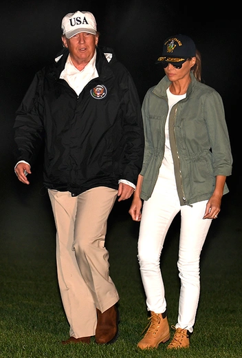 Мелания Трамп в целом не приверженка стиля casual: первая леди США старательно поддерживает свой имидж «шикарной женщины». Но бывают исключения: миссис Трамп приехала в белых классического кроя джинсах на встречу с жертвами землетрясения в Пуэрто-Рико в октябре 2017. Кроме того, даже в официальных поездках Мелания обычно переодевается в джинсы в самолете, так что ее часто можно увидеть спускающейся по трапу в дениме и удобной обуви.