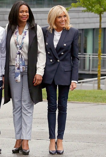 Но настоящую «джинсовую революцию» совершила прямо на наших глазах Брижит Макрон (читайте также: Как Брижит Макрон сняла табу на мини-юбки и стала новой иконой стиля Франции). Жена французского президента так любит джинсы, что надевает их даже на весьма значимые мероприятия. Причем выглядит это всегда элегантно и уместно. В числе прочего, Брижит надевала джинсы во время официального визита в Оттаву, на встречу с игроками французской сборной по футболу, на выступление перед членами Европейской Ассоциации по борьбе с лейкодистрофией и на встречу с Рианной.