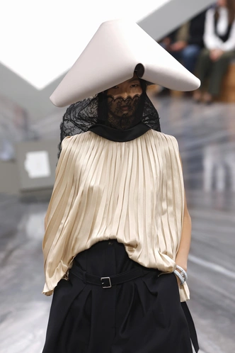Кажется, именно это событие подтолкнуло дизайнера к тому, чтобы процитировать «Labia» в своей дебютной женской коллекции. Правда, не все платье целиком, а отдельную его деталь — кружевной воротник-стойку, который некогда украшал его кейп (читайте также: Долгожданный рассвет: как прошел дебютный показ Джонатана Андерсона для женского Dior).