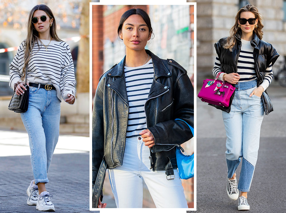 Как базовый элемент гардероба, тельняшка сочетается с другими принтами. Не стоит бояться экспериментов: морской рисунок прекрасно «уживается» с самыми смелыми решениями.