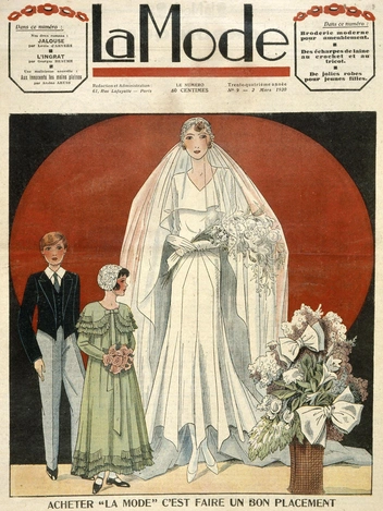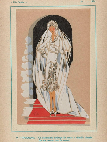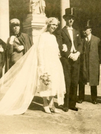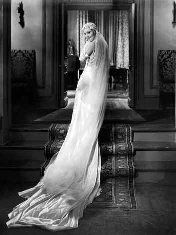 Представить свадебные образы 20-х годов прошлого столетия, начала эпохи «Золотого Голливуда», не так уж и сложно — балом правили роскошь, меха и блеск, о которых писал Фрэнсис Скотт Фицджеральд в романе «Великий Гэтсби». Олицетворением каноничного платья невесты того времени был наряд немки леди Луизы Маунтбеттен, что вышла замуж за наследника престола Швеции — Густава Адольфа (читайте также: 16 самых известных, красивых и дорогих свадебных платьев за всю историю).