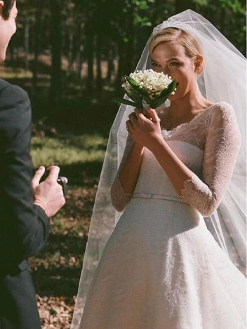 Моду 2010-х годов олицетворяла Кейт Мосс. Звезда вышла замуж в простом, на первый взгляд, платье авторства Джона Гальяно, тем самым вернув дизайнеру смысл жизни и признание в мире. Крой наряда не обладал особой замысловатостью, но ткань была усыпана жемчугом и кристаллами (читайте также: Невесты на миллион: 8 потрясающих свадебных платьев, в которых выходили замуж топ-модели).