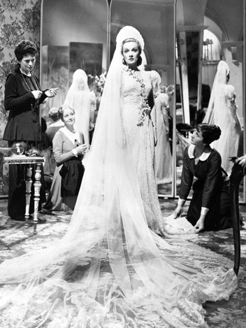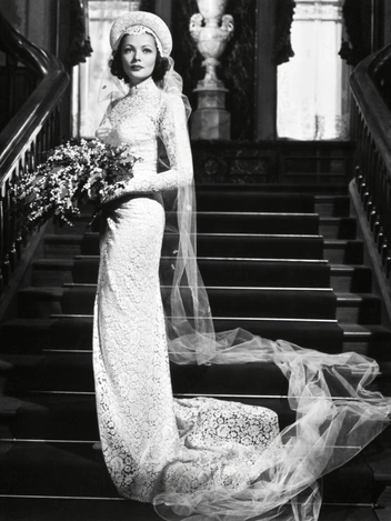 Аксессуары же еще были похожи на моду 20-х годов. Головной убор, украшенный цветами, кристаллами и бисером, плавно переходил в пышную фату, что прикрывала плечи и выходила в шлейф. Иконами десятилетия были актрисы Мэдж Беллами и Марлен Дитрих (читайте также: 10 самых красивых свадебных платьев в истории кино).