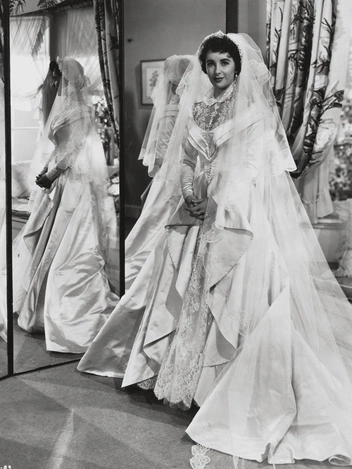 Кто бы не выходил замуж в прошлом столетии, все последние тенденции свадебной моды были в кино. Элизабет Тейлор, Лорен Бэколл, Одри Хепберн появлялись в фильмах в самых модных платьях — каждое из них было декорировано тонким кружевом, обладало пышной юбкой и спущенными или открытыми плечами.