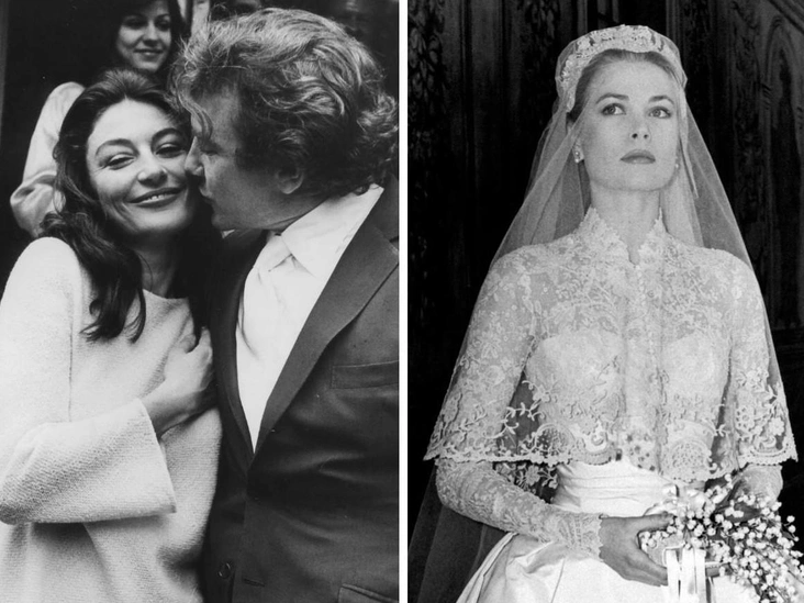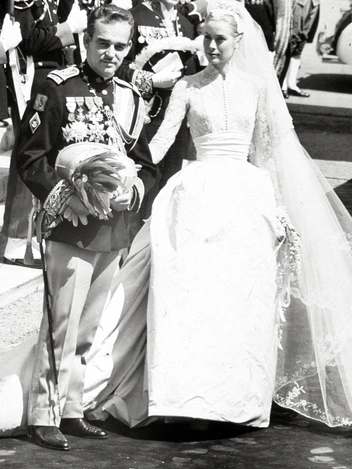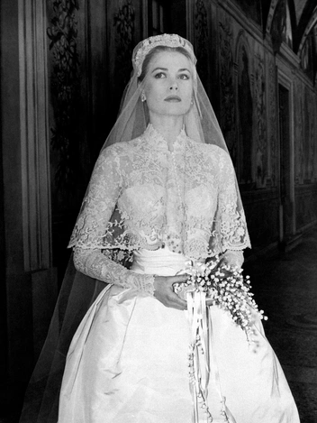 Грейс Келли никогда не была похожа на остальных известных девушек: она обладала своенравным характером и имела отличительный вкус. Именно поэтому свадебный образ невеста подчеркнула не бриллиантовой тиарой, как и полагалось монаршим особам, а джульеткой, расшитой жемчугом.