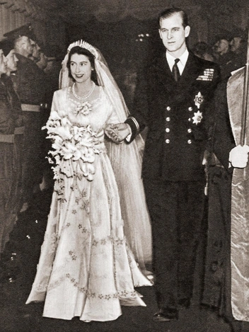 Однако самым обсуждаем платьем 40-х годов стало платье принцессы Елизаветы, в будущем Елизаветы II, королевы Великобритании. Монаршая особа вышла замуж за Филиппа Маунтбеттена 20 ноября 1947 года в творении королевского дизайнера Нормана Хартнелла. Именно монаршая особа задала в дальнейшем тренд на длинный шлейф, усыпанный цветами, ведь ее свадебный образ имел подол длиною в четыре метра и символизировал завершение войны.