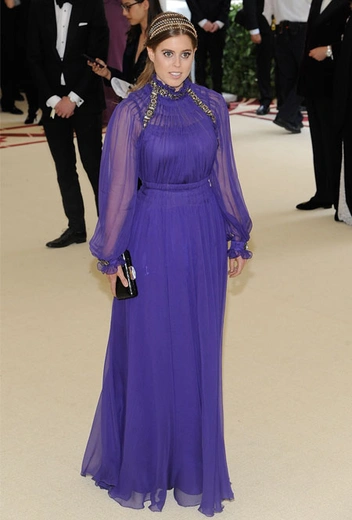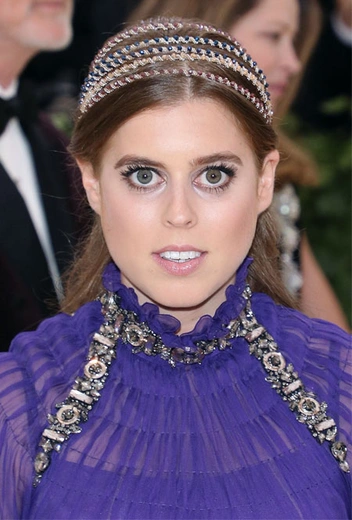 Вечерний вариант показала старшая дочь принца Эндрю, принцесса Беатрис, во время своего культового выхода на Met Gala. Образ с темно-фиолетовым платьем в греческом стиле от Alberta Ferretti монаршая особа завершила несколькими сияющими повязками с кристаллами, которые создавали иллюзию переливающейся короны.