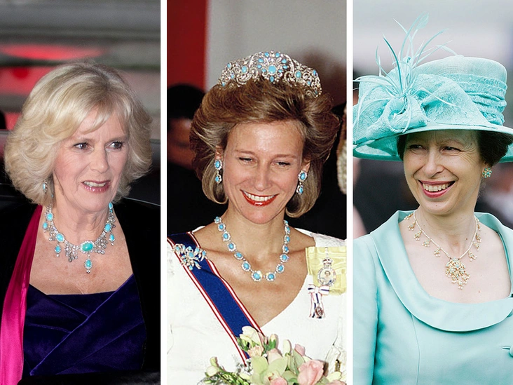 Во время официального визита в Англию в 1966 году президент Пакистана Аюб Хан подарил Елизавете II ожерелье из бирюзы, жемчуга и золота. Несколько лет спустя она изменила форму изделия, укоротив его. А также заказала к колье пару подходящих сережек. В таком виде она подарила комплект своей дочери, принцессе Анне. Последняя надевает эти украшения довольно часто, в том числе на Королевские скачки в Аскоте в 2007 году.
