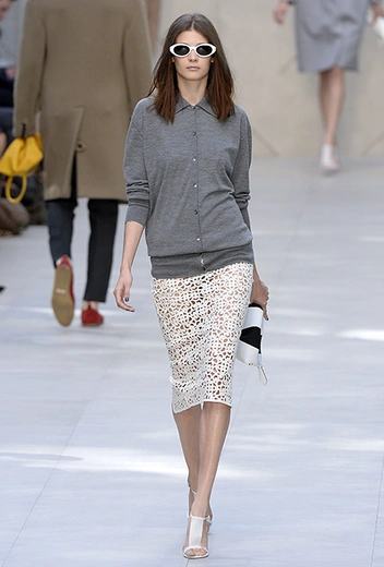 Постепенно – хотя и не сразу – «осовремениваться» стала, собственно, и одежда Burberry. Если, к примеру, еще в сезоне SS2014 Бейли ориентируется на конвенциональную женственность, графичный крой и минималистичную, хоть и не скучную, классику, то уже в коллекции SS2017 заметно движение в сторону модной асексуальной андрогинности, начинает проявляться тяга креативного директора к ассиметричному крою в духе деконтруктивизма.