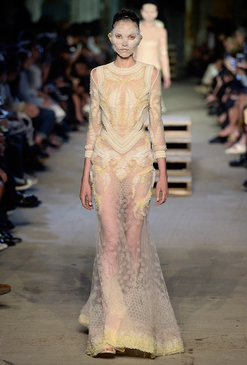 Итальянец обожает эксперименты, граничащие с эпатажем. Он выпускал на подиум моделей в масках и с макияжем-пирсингом, создавал фантастические авангардные головные уборы и костюмы, похожие на марсианское облачение.