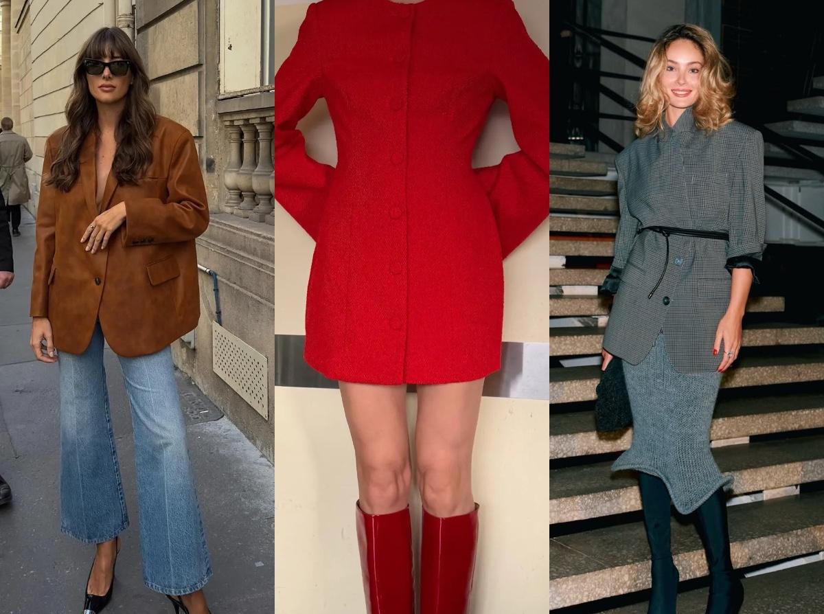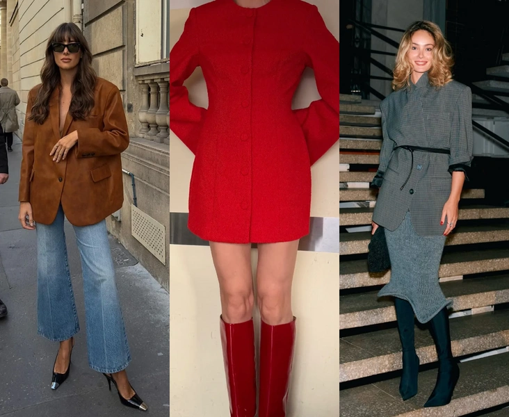 Оверсайз‑пиджак не сдает позиции, но меняет пропорции: плечи становятся шире, длина — немного ниже бедра, посадка — нарочито расслабленной, как будто это вовсе не ваш жакет. Идеальная база на каждый день — черный или графитовый, прямые голубые джинсы, белый топ или рубашка и кроссовки/балетки (читайте также: Брючный костюм снова в моде — и теперь он про ауру и власть, а не офис).