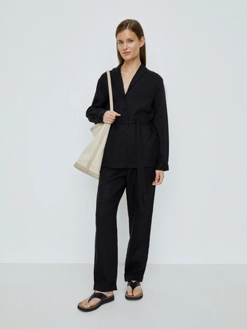 Выбирайте модели с прямыми или широкими штанинами, oversize- рубашкой или моделью в стиле кимоно. Свободный крой и летящий силуэт делают такой предмет гардероба незаменимым летом-2022 (читайте также: Где покупать одежду: 13 российских брендов, о которых вам нужно знать).