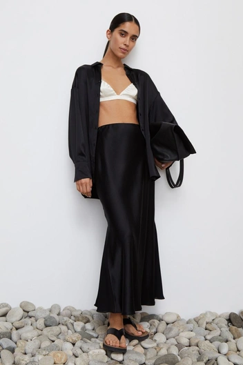Актуальные в этом сезоне юбки макси смотрятся стильно с футболками и базовыми топами. Не теряют актуальности и модели в бельевом стиле, из шелка и атласной ткани. К таким можно подобрать вязаный кроп-топ или модель в технике кроше, а также майку-алкоголичку или топ-халтер, а сверху накинуть рубашку свободного кроя или кимоно.