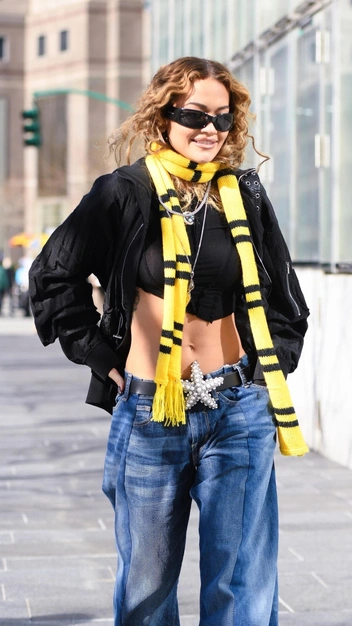 Этот прием используйте сразу же, как только потеплеет. Наденьте широкие джинсы, подчеркните талию кожаным ремнем, а в качестве верха подберите укороченный облегающий топ, который придаст вам сексуальность и стиль. Если же на улице прохладно, накиньте поверх объемный бомбер, пиджак или повяжите на плечи свитер вместо шарфа, как это сделала Кендалл Дженнер.