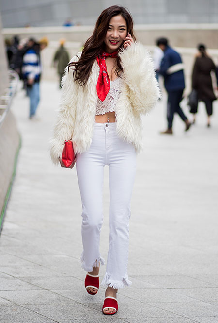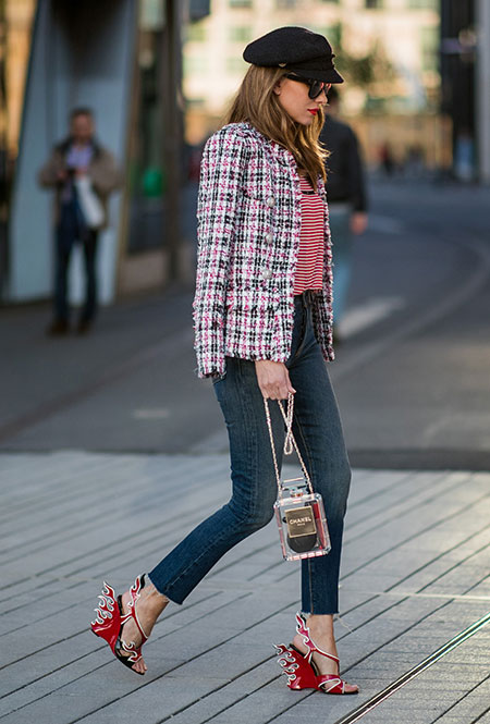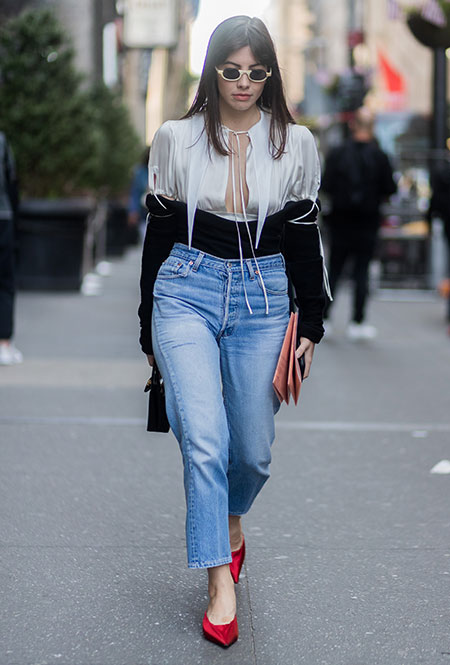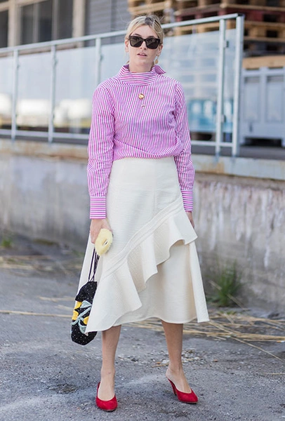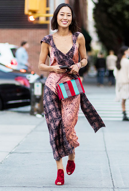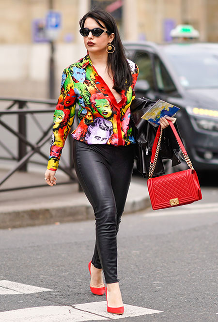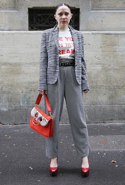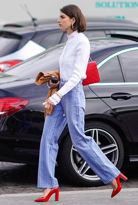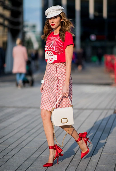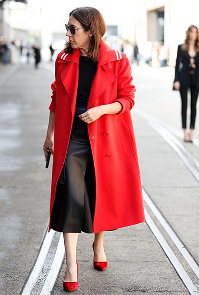 Красные туфли будут смотреться не только с минималистичными платьями в стиле Виктории Бекхэм. Они прекрасно дополнят практически любой образ — от взбалмошного в стиле 80-х с мохеровым свитером и вареными джинсами до довольно-таки строгого из костюма в тонкую полоску и белой блузы. Мы не будем говорить, что к красным туфлям нельзя подбирать красную сумку, потому что «аксессуары одного цвета — это моветон». Еще как можно! В моде больше не существует прямых директив, поэтому если вы решили, что условные алые босоножки прекрасно сочетаются с условным алым клатчем — флаг вам в руки.