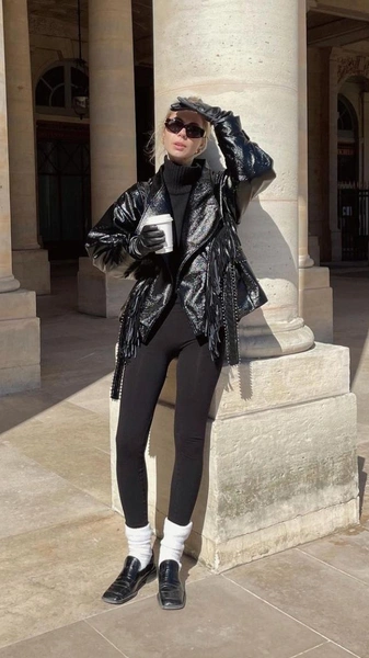 К слову, в такой стилизации важно качество: лосины должны обладать высокой посадкой, а материал следует выбирать плотный и стройнящий — иначе дорогой образ у вас вряд ли получится. То же самое касается и цвета. Не просто так бренды выбирают именно темные оттенки, так как они лучше других справляются с проблемными зонами, визуально корректируя женскую фигуру. В этом случае бренды не делают из одежды лишь тренд для селебрити — дизайнеры стремятся создавать предметы, которые смогут надеть и девушки не с модельными параметрами.