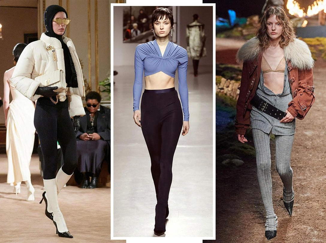 Кто бы мог подумать, что теперь сочетание черных лосин, шелковых блуз и туфель на каблуке станет самым модным. За шик и гламур в этом сезоне отвечают Saint Laurent и Schiaparelli. Марки интегрировали базовый предмет гардероба в вечерний дресс-код: смелые девушки могут примерить леггинсы с лодочками или слингбэками, а сверху надеть свитер с пуховиком или пиджак и блузу. Главным атрибутом здесь будут украшения и аксессуары: ремни, кожаные перчатки, массивные серьги и цепи.