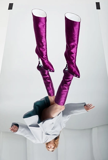 Помимо легкой и открытой обуви в коллекции можно найти красочные сапоги-трубы. Яркий цвет фуксии и необычный материал – атлас – позволят носить их не только на каждый день, но и по особому случаю – такой прием уже не раз демонстрировали селебрити на важных мероприятиях.